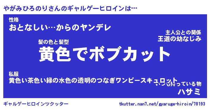 | 女子向けラノベタイトル風あだ名 | 『誰かこのやがみひろのりを説明してください! ~契約から始まるウェディング~』 |