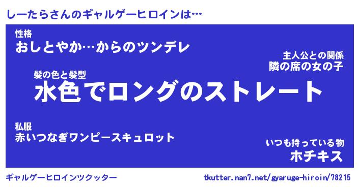| 男性向けラノベタイトル風あだ名 | 『しーたらの憂鬱』 |