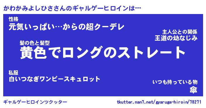 | 肩書あだ名 | 『かわかみよしひさ御曹司』 |