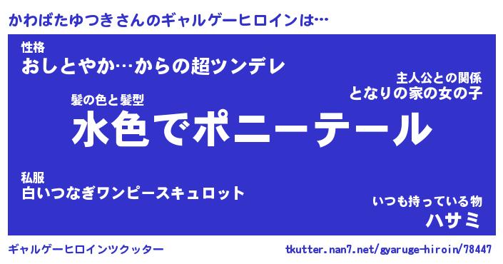 | 胡散臭い通販商品みたいなあだ名 | 『必ず成功するブレスレット…その名も「かわばたゆつき」』 |