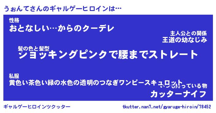 | 女子向けラノベタイトル風あだ名 | 『(仮)うぉんてのやんごとなき事情』 |