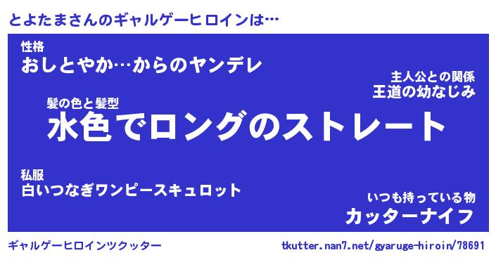 | 女子向けラノベタイトル風あだ名 | 『(仮)とよたまのやんごとなき事情』 |