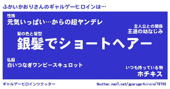 | ヒーロー風カッコイイあだ名 | 『スーパーフカイカオリ』『魔戒騎士フカ』 |