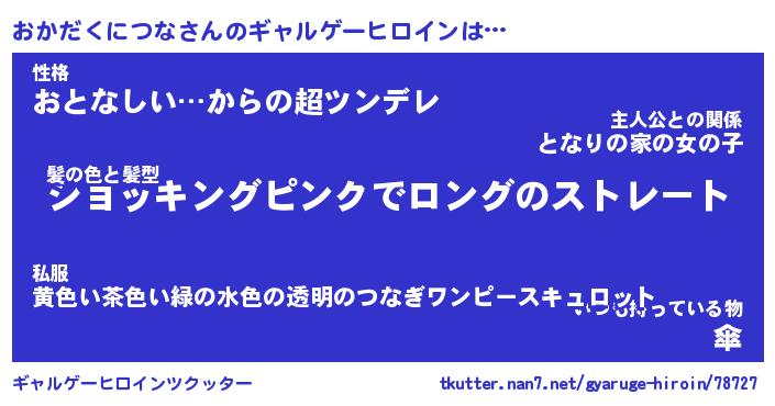 | 女子向けラノベタイトル風あだ名 | 『(仮)おかだくにつなのやんごとなき事情』 |