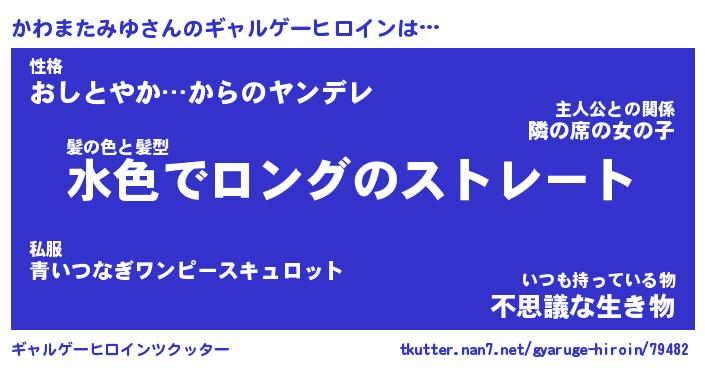 | 男性向けラノベタイトル風あだ名 | 『かわまたみゆの憂鬱』 |