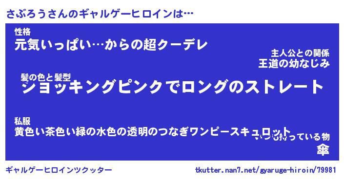 | 女子向けラノベタイトル風あだ名 | 『(仮)さぶろうのやんごとなき事情』 |