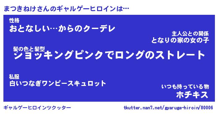 | 男性向けラノベタイトル風あだ名 | 『まつきねけの憂鬱』 |
