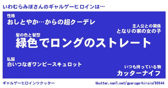 | ヒーロー風カッコイイあだ名 | 『スーパーイワムラミホ』『幻影騎士イワ』 |