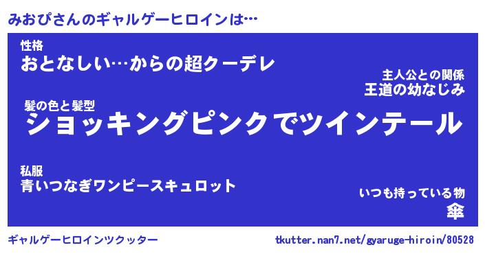 | 男性向けラノベタイトル風あだ名 | 『みおぴの憂鬱』 |