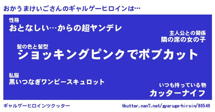| 胡散臭い通販商品みたいなあだ名 | 『必ず成功するブレスレット…その名も「おかうまけいご」』 |