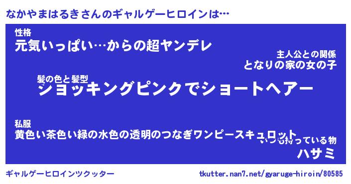 | 女子向けラノベタイトル風あだ名 | 『(仮)なかやまはるきのやんごとなき事情』 |