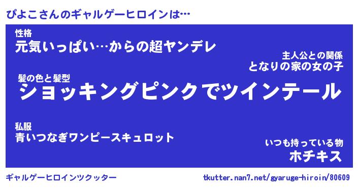 | 女子向けラノベタイトル風あだ名 | 『(仮)ぴよこのやんごとなき事情』 |