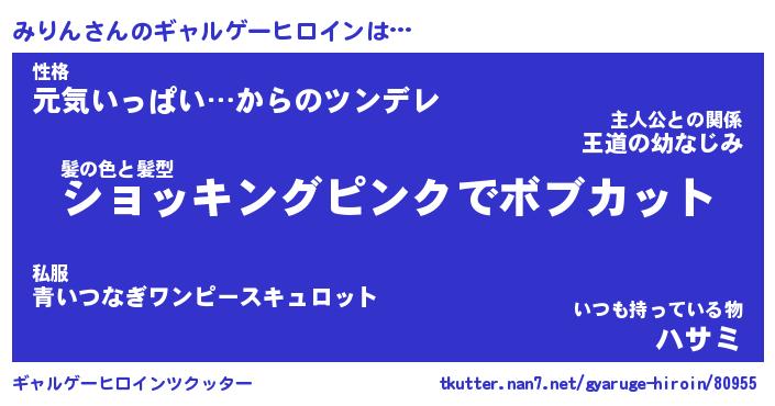 | 女子向けラノベタイトル風あだ名 | 『(仮)みりんのやんごとなき事情』 |