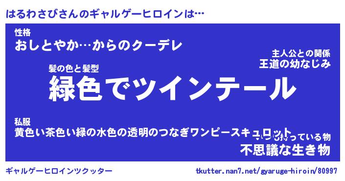 | ファンタジー風あだ名 | 『ハルフェル』『エターナルハルワサビー』 |