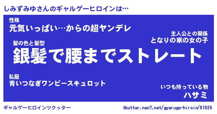 | ファンタジー風あだ名 | 『シミフェル』『エターナルシミズミユー』 |