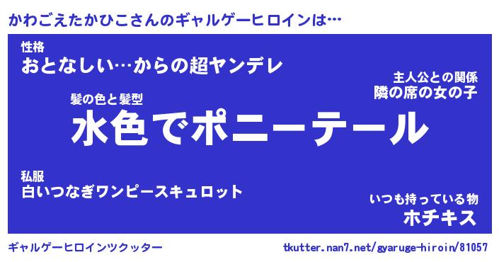 | ポケモン風あだ名 | 『カワチュウ』『カワゴダネ』 |