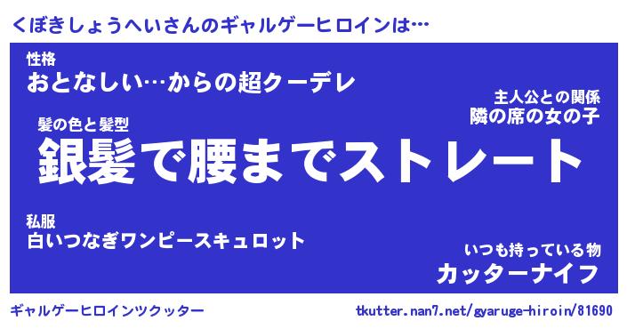 | 女子向けラノベタイトル風あだ名 | 『くぼきしょうへい姫と円卓の騎士』 |