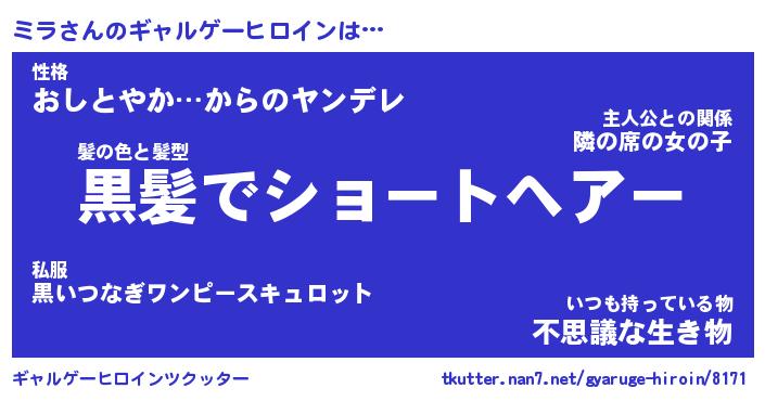| ポケモン風あだ名 | 『ミラチュウ』『ミラダネ』『ヒミラ』 |