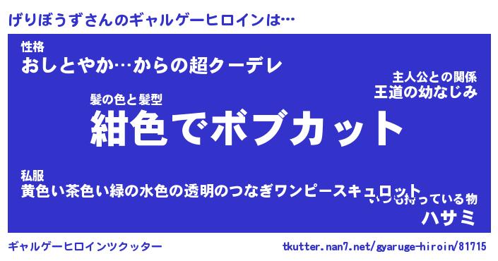 | 男性向けラノベタイトル風あだ名 | 『ゲリボウズアートオンライン』 |