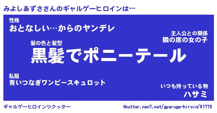 | ヒーロー風カッコイイあだ名 | 『スーパーミヨシアズサ』『暗黒騎士ミヨ』 |