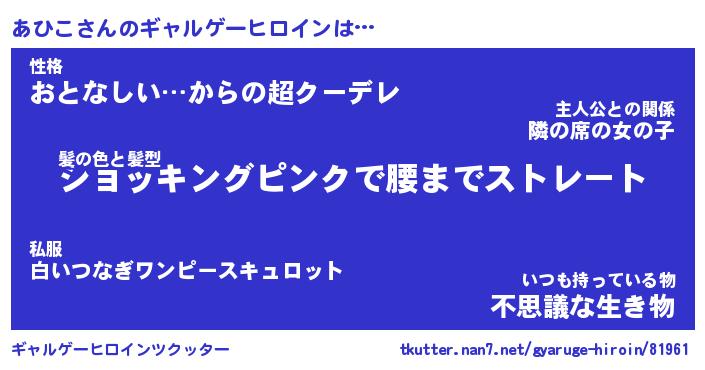 | ファンタジー風あだ名 | 『アヒフェル』『エターナルアヒコー』 |