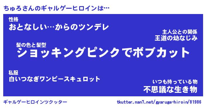 | 胡散臭い通販商品みたいなあだ名 | 『必ず成功する水晶球…その名も「ちゅろ」』 |