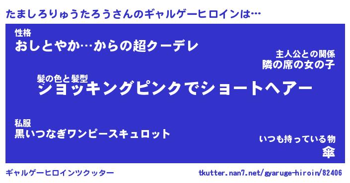 | 男性向けラノベタイトル風あだ名 | 『たましろりゅうたろうの憂鬱』 |