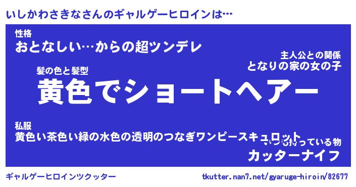 | 恥ずかしいあだ名 | 『プリティーいしかわさきな』『いしちん』 |