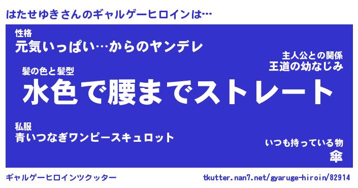 | 男性向けラノベタイトル風あだ名 | 『はたせゆきの憂鬱』 |