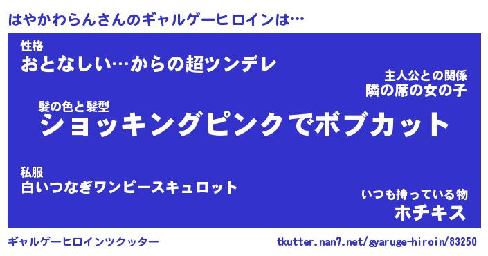 | 女子向けラノベタイトル風あだ名 | 『(仮)はやかわらんのやんごとなき事情』 |