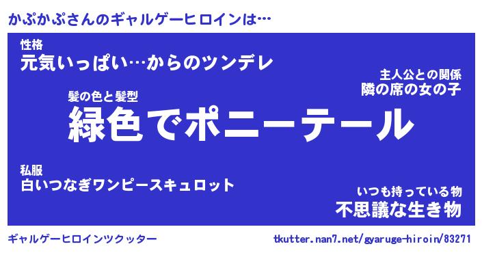 | 女子向けラノベタイトル風あだ名 | 『かぷかぷ姫と円卓の騎士』 |
