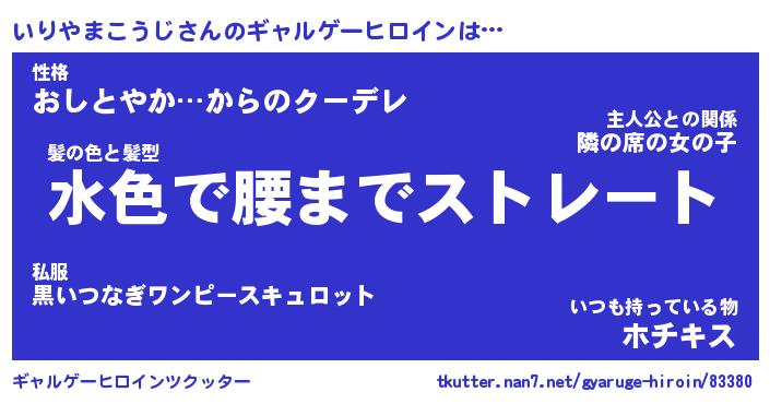 | 女子向けラノベタイトル風あだ名 | 『(仮)いりやまこうじのやんごとなき事情』 |