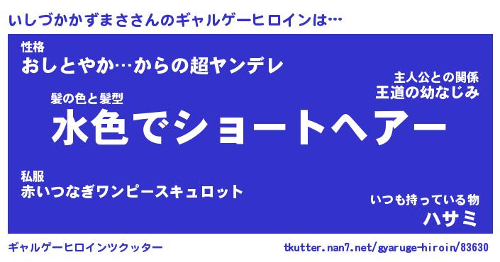 | 女子向けラノベタイトル風あだ名 | 『(仮)いしづかかずまさのやんごとなき事情』 |