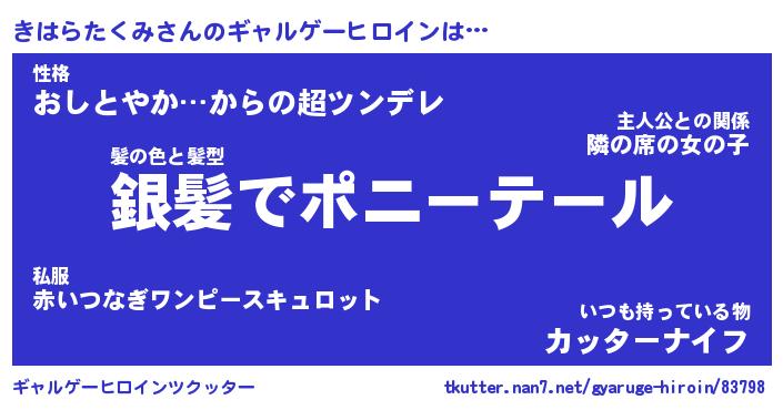 | 女子向けラノベタイトル風あだ名 | 『きはらたくみ姫と円卓の騎士』 |