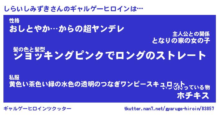 | 伝説のあだ名 | 『伝説のスナイパーしらいしみずき』 |