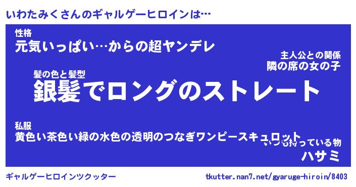 | ヒーロー風カッコイイあだ名 | 『スーパーイワタミク』『幻影騎士イワ』 |