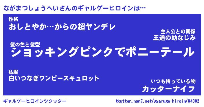 | 女子向けラノベタイトル風あだ名 | 『(仮)ながまつしょうへいのやんごとなき事情』 |
