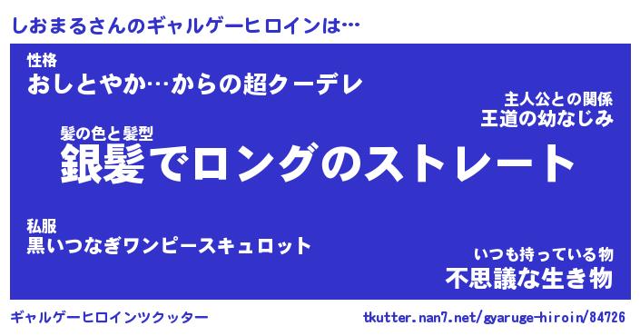 | ファンタジー風あだ名 | 『シオフェル』『エターナルシオマルー』 |