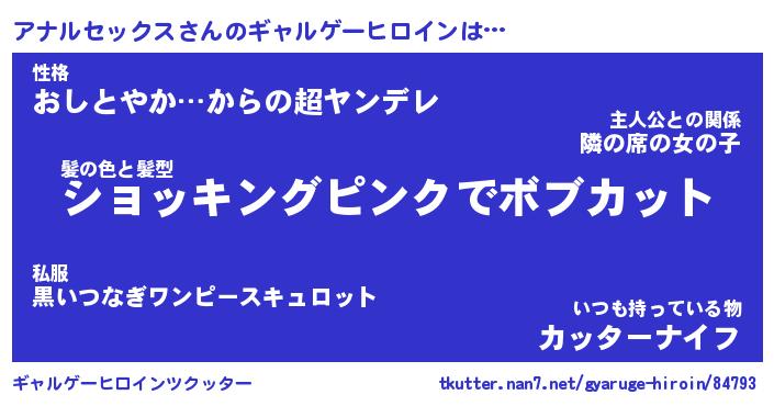 | 男性向けラノベタイトル風あだ名 | 『アナルセックスの憂鬱』 |