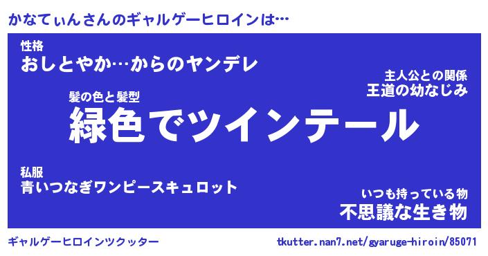 | ファンタジー風あだ名 | 『カナフェル』『エターナルカナティンー』 |