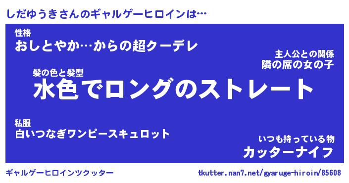 | 女子向けラノベタイトル風あだ名 | 『(仮)しだゆうきのやんごとなき事情』 |