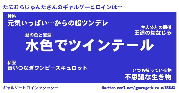 | 女子向けラノベタイトル風あだ名 | 『(仮)たにむらじゅんたのやんごとなき事情』 |