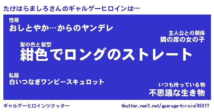 伝説のあだ名 | 『封印されしスナイパーたけはらましろ』 |