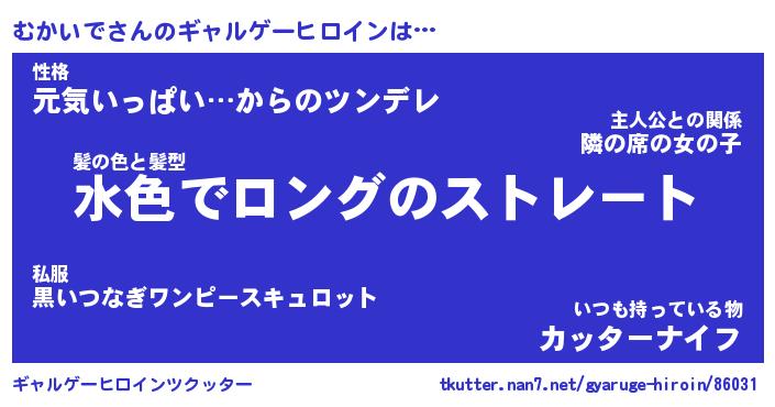 | 男性向けラノベタイトル風あだ名 | 『むかいでの憂鬱』 |