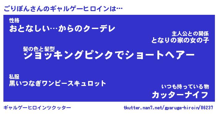| 女子向けラノベタイトル風あだ名 | 『(仮)ごりぽんのやんごとなき事情』 |