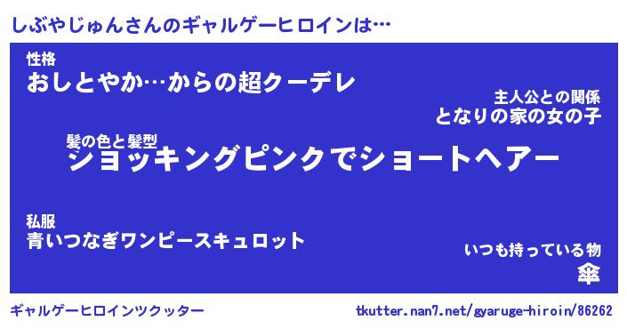 | 女子向けラノベタイトル風あだ名 | 『(仮)しぶやじゅんのやんごとなき事情』 |