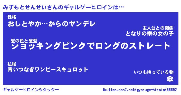 | ファンタジー風あだ名 | 『ミズフェル』『ファントムミズス』 |