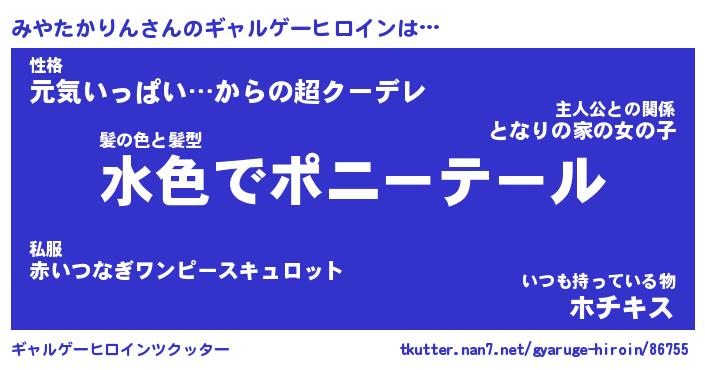 | 女子向けラノベタイトル風あだ名 | 『(仮)みやたかりんのやんごとなき事情』 |