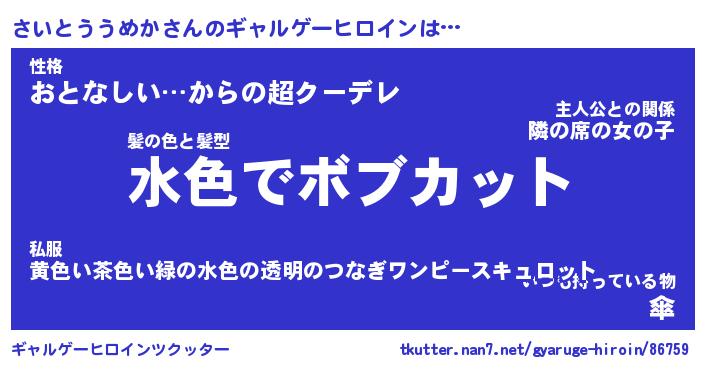 | 胡散臭い通販商品みたいなあだ名 | 『必ず成功する水晶球…その名も「さいとううめか」』 |