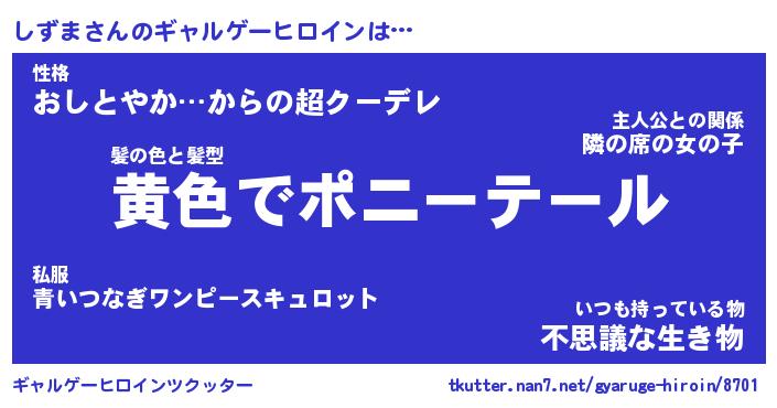 | ヘコむあだ名 | 『しずもー』『つくし』『しず太郎』 |